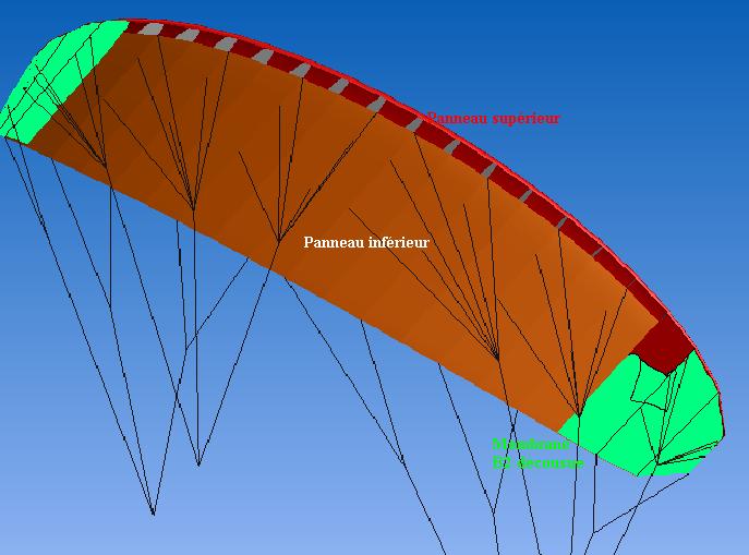 Il faut rappeler que ces calculateurs servent à designer un CV à caisson de forme rectangulaire avec bouts effilés. On entend, par aile rectangulaire, une aile dont la corde est égale sur tous les caissons. Ceci fait que 2 membranes rectangulaires enveloppent les dessus et le dessous du CV ( sauf aux 6 caissons des bouts). Des profils y sont simplement cousus à des espaces réguliers. Seule manoeuvre avant cette couture est une couture de pinçage à chaque caisson. Cette manière de procéder économise beaucoup de labeur comparé à celle nécessitée pour des caissons inégaux.